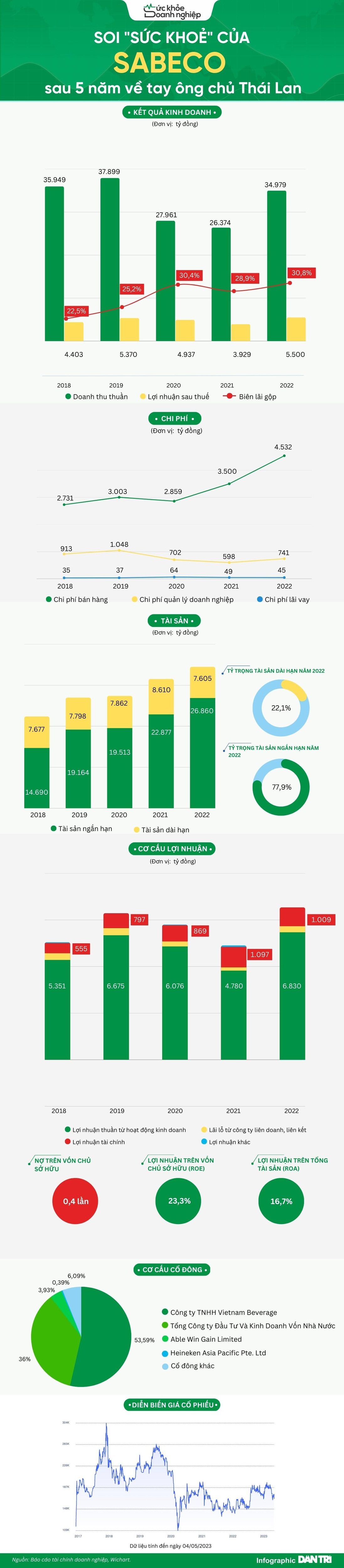 Dường như các cổ đông vẫn chưa hài lòng với kết quả kinh doanh của đại gia ngành bia sau 5 năm về tay người Thái. Công ty này lập đỉnh về lợi nhuận tới gần 5.500 tỷ đồng và biên lãi gộp lên tới 30,8% trong năm 2022.