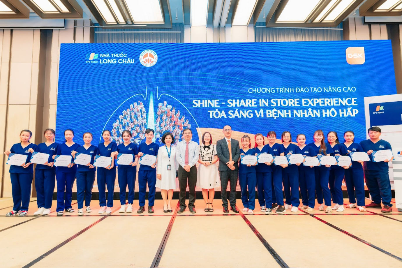 Thông qua chương trình đào tạo "Shine: Tỏa sáng vì bệnh nhân hô hấp" được FPT Long Châu và GSK Việt Nam triển khai, gần 1.000 dược sĩ của chuỗi nhà thuốc được hỗ trợ đào tạo nâng cao kiến thức và kỹ năng tư vấn cho bệnh nhân hen suyễn.
