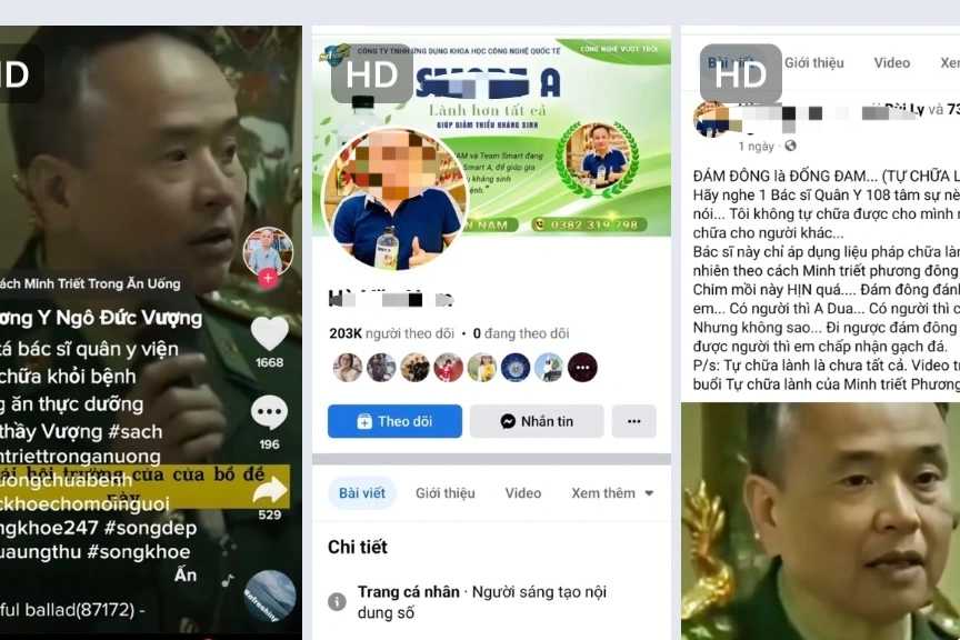 BV Trung ương Quân đội 108 cảnh báo về việc một người giả danh bác sĩ quân đội quảng bá trên mạng xã hội liệu pháp "chữa lành tự nhiên". Nhiều người chia sẻ clip, bán thực phẩm chức năng.