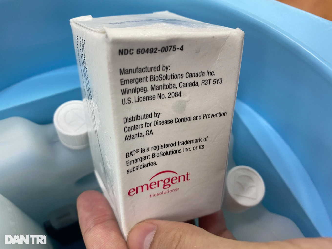 Thông tin từ bao bì cho thấy, thuốc giải này được sản xuất bởi Emergent BioSolutions Canada Inc. có địa chỉ tại Manitoba, Canada.