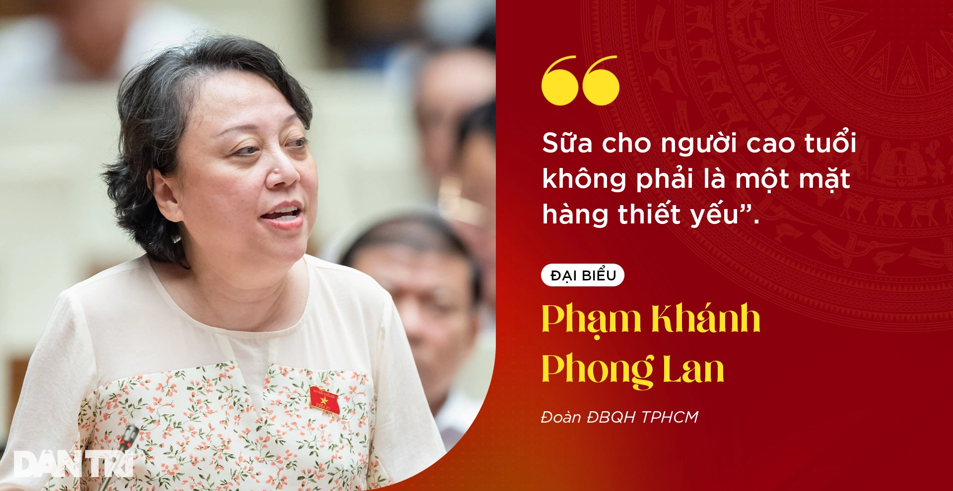 "Theo tôi, sữa cho người cao tuổi không phải là một mặt hàng thiết yếu, chúng ta cũng chưa có quy định đó, cho nên tập trung vào những mặt hàng gì thực sự thiết yếu và làm cho tốt để bình ổn này thực sự có ý nghĩa hơn là lâu lâu chúng ta nhớ ra một mặt hàng rồi đưa vào thì rất khó mà không có cơ sở gì và cũng sẽ gây rất nhiều những ảnh hưởng cho các doanh nghiệp sản xuất và phân phối, đặc biệt là trong tình trạng khó khăn như hiện nay", là quan điểm của đại biểu Phạm Khánh Phong Lan (đoàn TPHCM) tại phiên thảo luận về Luật Giá sửa đổi chiều 23/5.