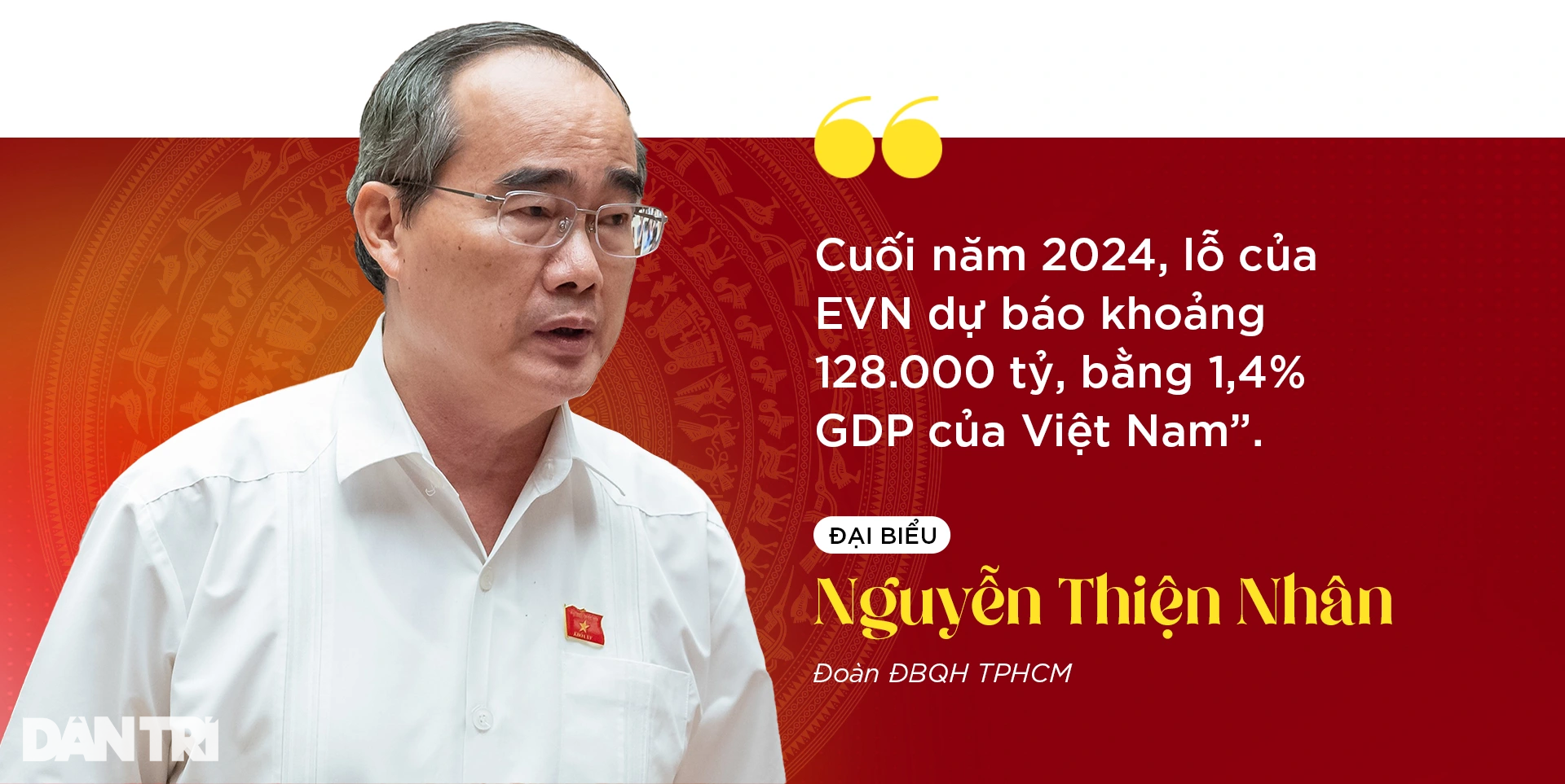 Phát biểu tại nghị trường, đại biểu Nguyễn Thiện Nhân (đoàn TPHCM) nói: Năm 2022, GDP của Pháp là 3.128 tỷ USD. Số chi ngân sách hỗ trợ các công ty điện là 49 tỷ USD để họ không tăng giá điện nhiều khi chi đầu vào lại tăng mạnh, tức là Chính phủ Pháp chi hỗ trợ bằng 1,5% GDP. Cuối năm 2024, lỗ của Tập đoàn Điện lực Việt Nam dự báo khoảng 128.000 tỷ đồng, bằng 1,4% GDP của Việt Nam.