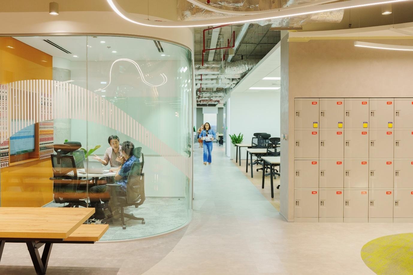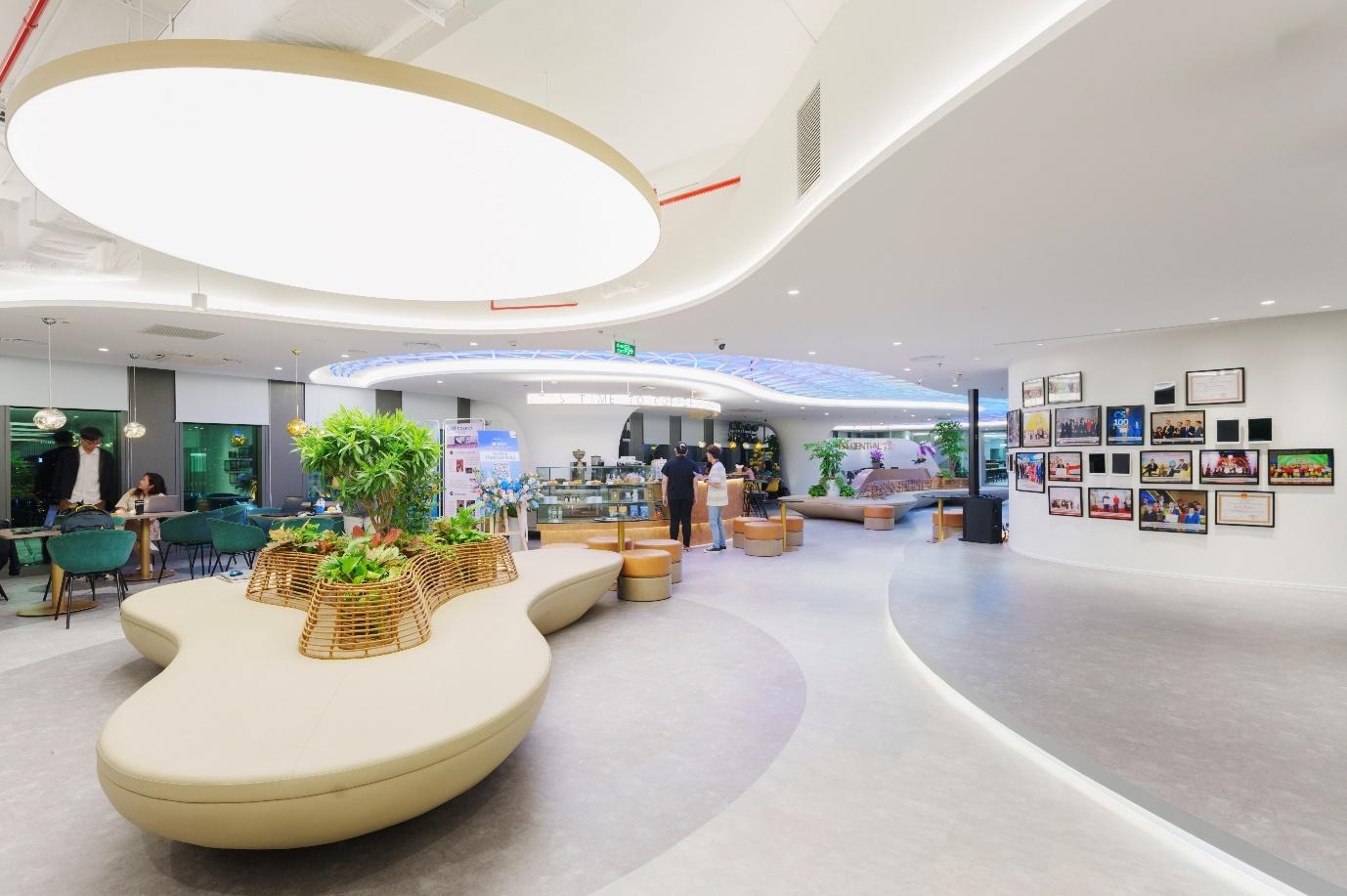 Không chỉ sở hữu vị trí đắc địa, văn phòng tại Phú Mỹ Hưng của Prudential Việt Nam còn được đầu tư thiết kế lẫn tiện ích, với không gian mở hiện đại, mang hơi thở nghệ thuật, tối ưu không gian làm việc theo mô hình linh hoạt (hybrid) cho nhân viên.