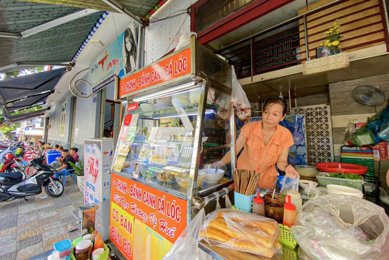 Dù chỉ mới mở cửa, quán đã có lác đác vài người đến chờ ăn. Thực khách yêu thích món ăn tại đây bởi cái đậm vị của tô bánh canh cá lóc của người gốc Huế. Bánh canh dao động từ 35.000-45.000 đồng/tô, tùy mức độ đầy đủ các loại "topping" ăn kèm như cá, huyết, chả,…