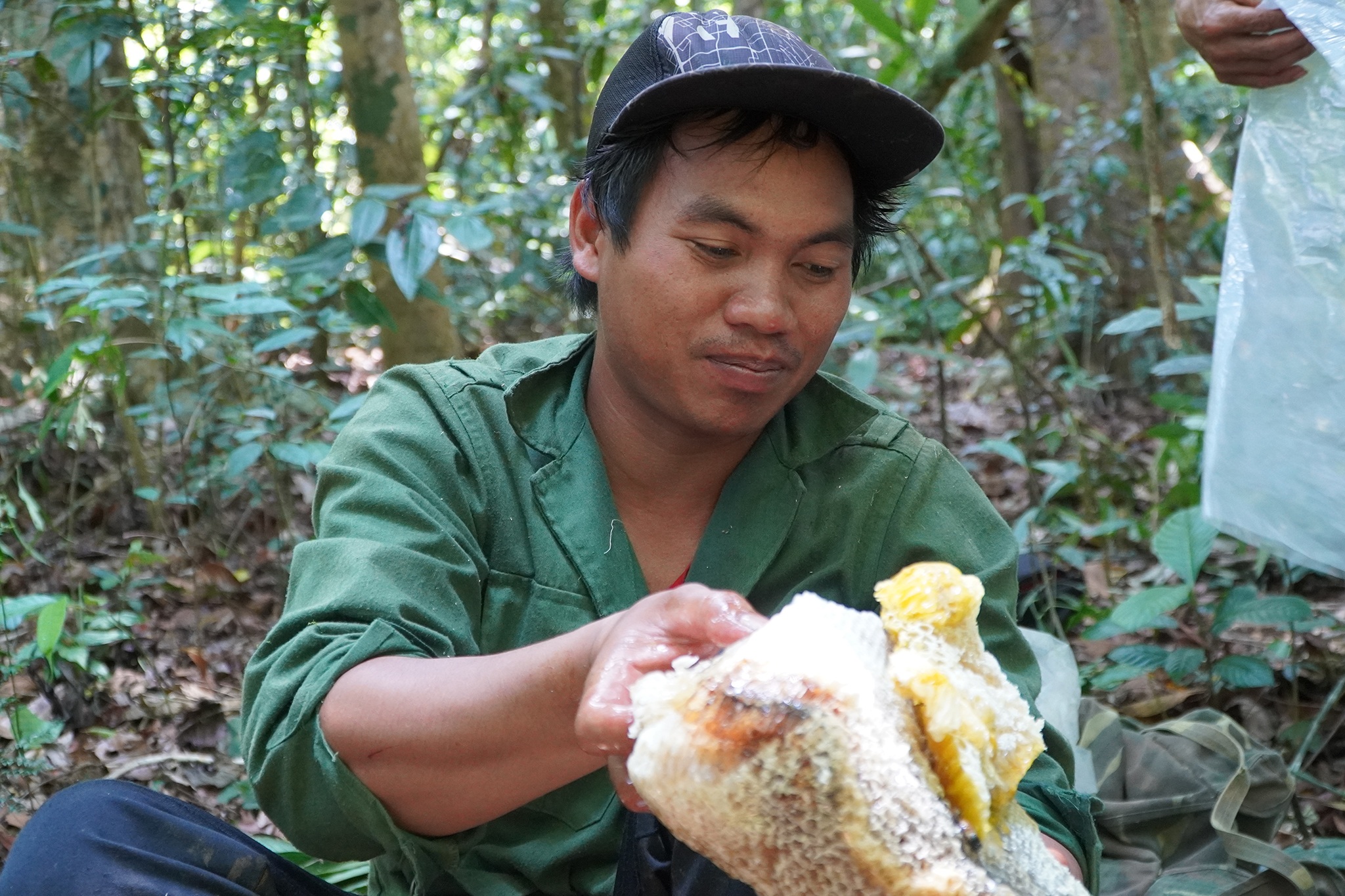 Để có thêm thu nhập, người dân trong khu vực săn mật ong hoặc tận thu những lâm sản phụ.