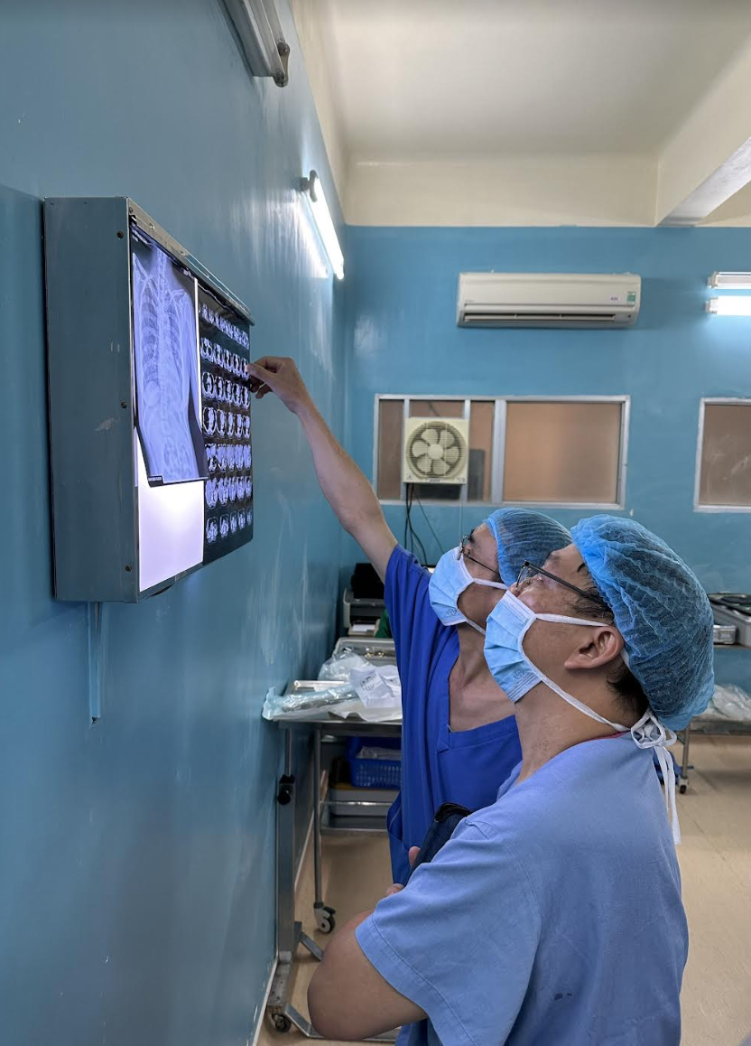 Nhờ kinh nghiệm và sự phối hợp nhuần nhuyễn, các bác sĩ chuyên khoa Phẫu thuật Tim - Mạch máu đã tiếp cận túi phình nơi có lỗ thủng động mạch, nhanh chóng xử lý sạch huyết khối, khâu lỗ thủng động mạch chủ trong 15 phút.