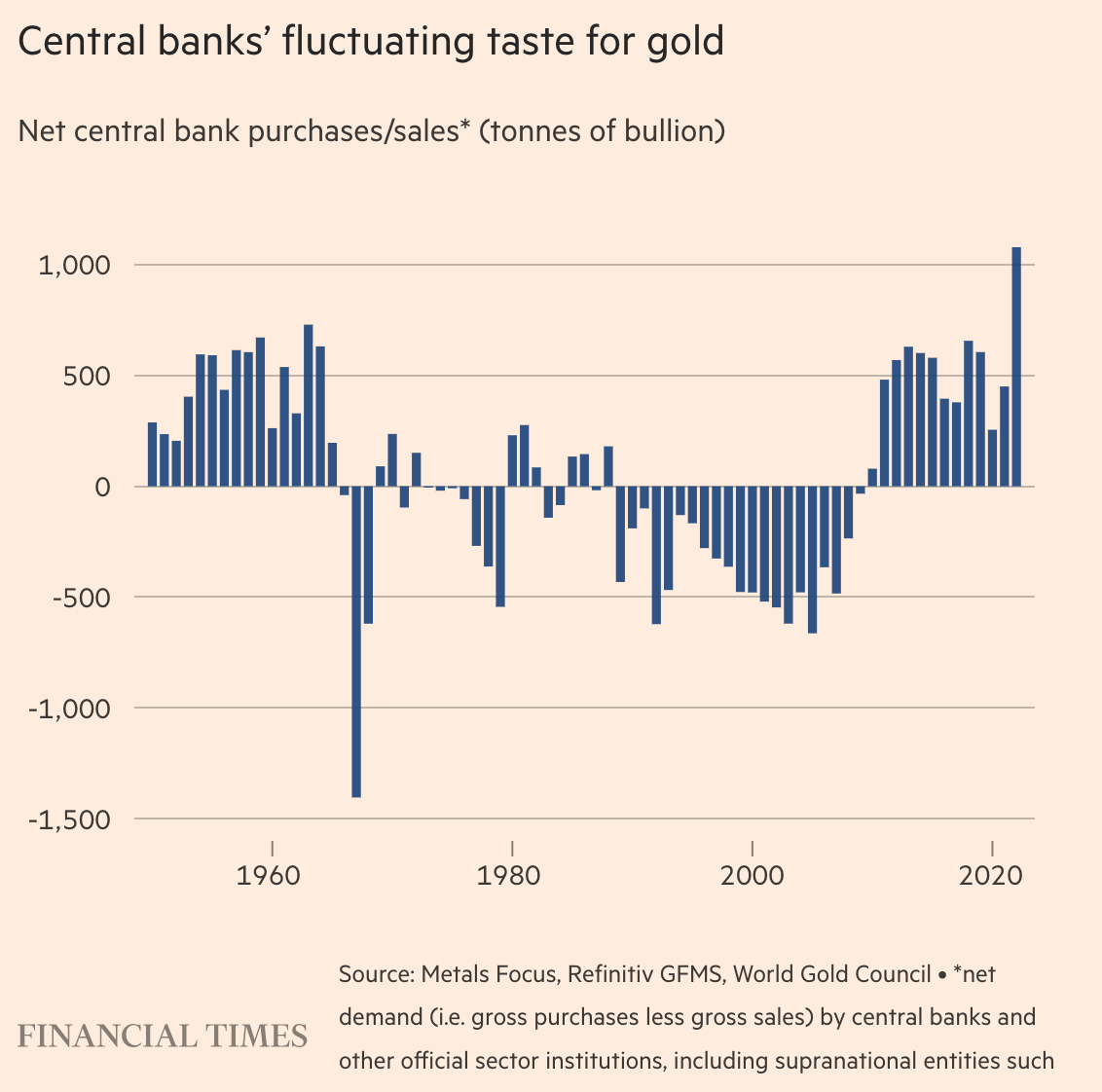 Ngoài ra, một yếu tố địa chính trị khác cũng được giới đầu tư quan tâm đó là việc các nước đang phát triển cảnh giác với sức mạnh của đồng USD. Sau khi phương Tây trừng phạt Nga bằng cách đóng băng 300 tỷ USD dự trữ ngoại hối của Nga. Nhiều quốc gia nắm giữ USD đã lo ngại và ngay lập tức mua thêm vàng đề đa dạng hóa tài sản dự trữ của mình.