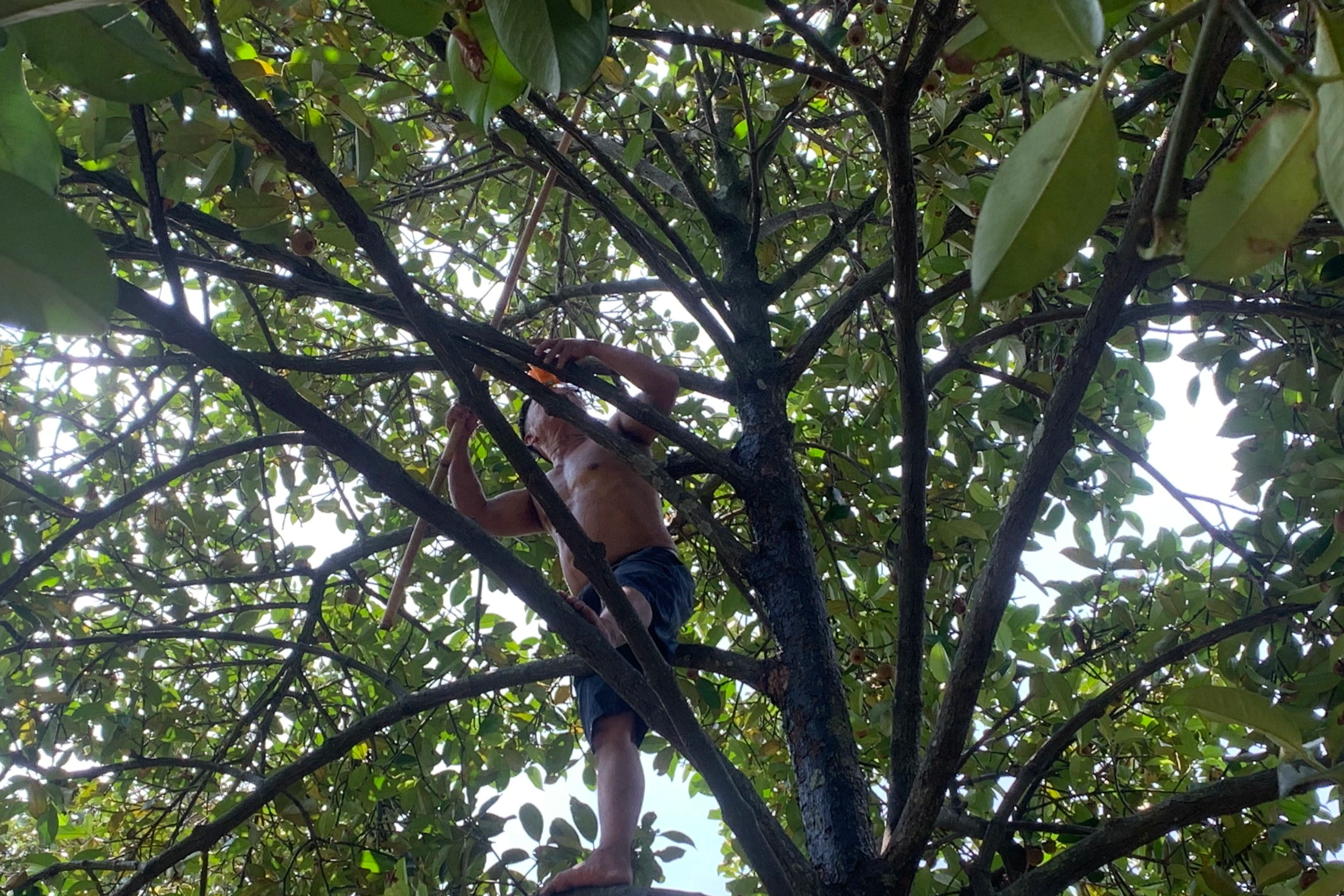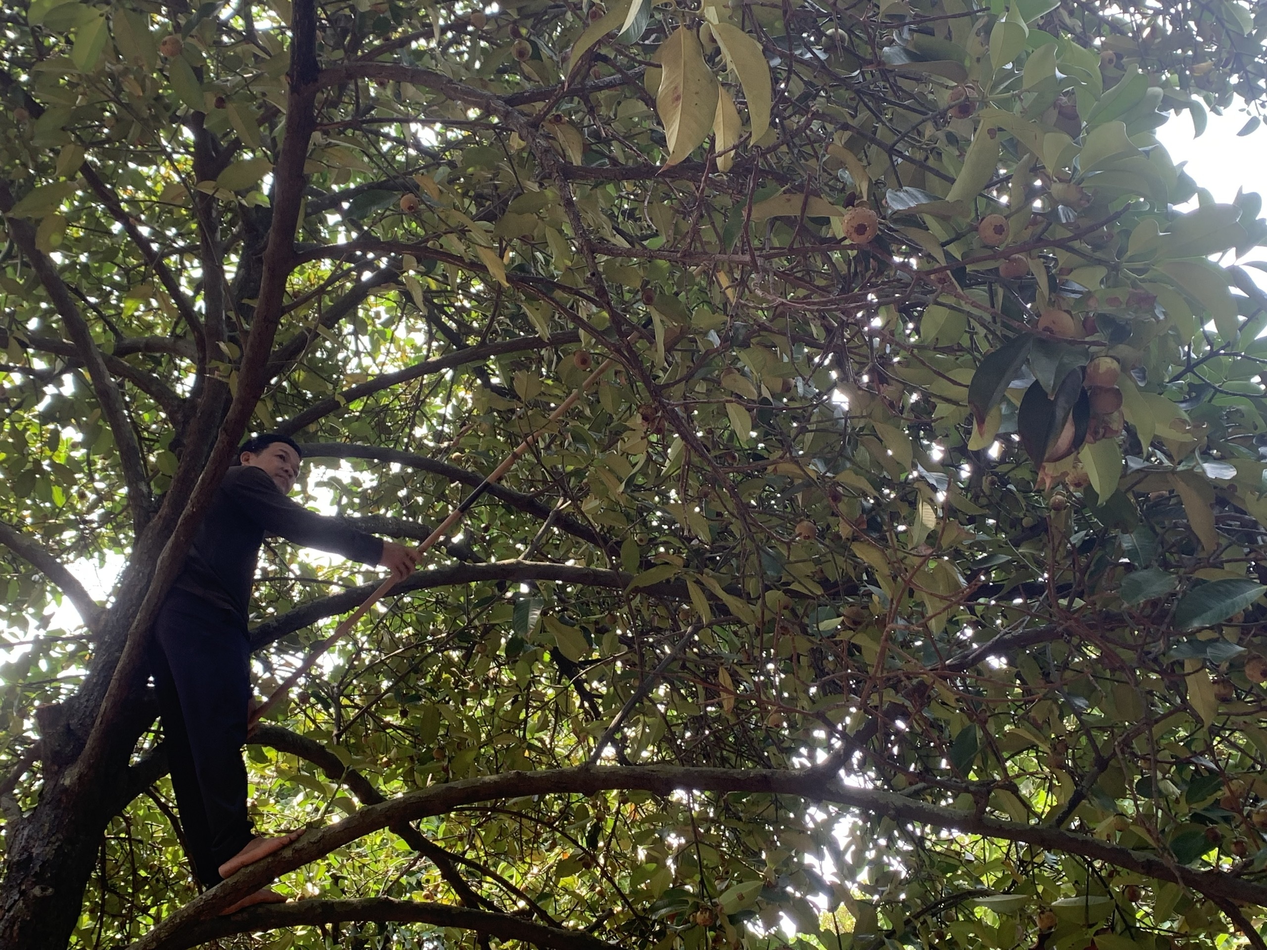 Theo anh Nam, ngoài việc phải biết cách trèo cây, người làm công việc này cũng cần học để nhận biết trái măng già, sắp chín. Mặc dù có phần nguy hiểm nhưng có việc làm, mang lại thu nhập đủ nuôi vợ con, với anh Nam, công việc thời vụ này khá ổn.