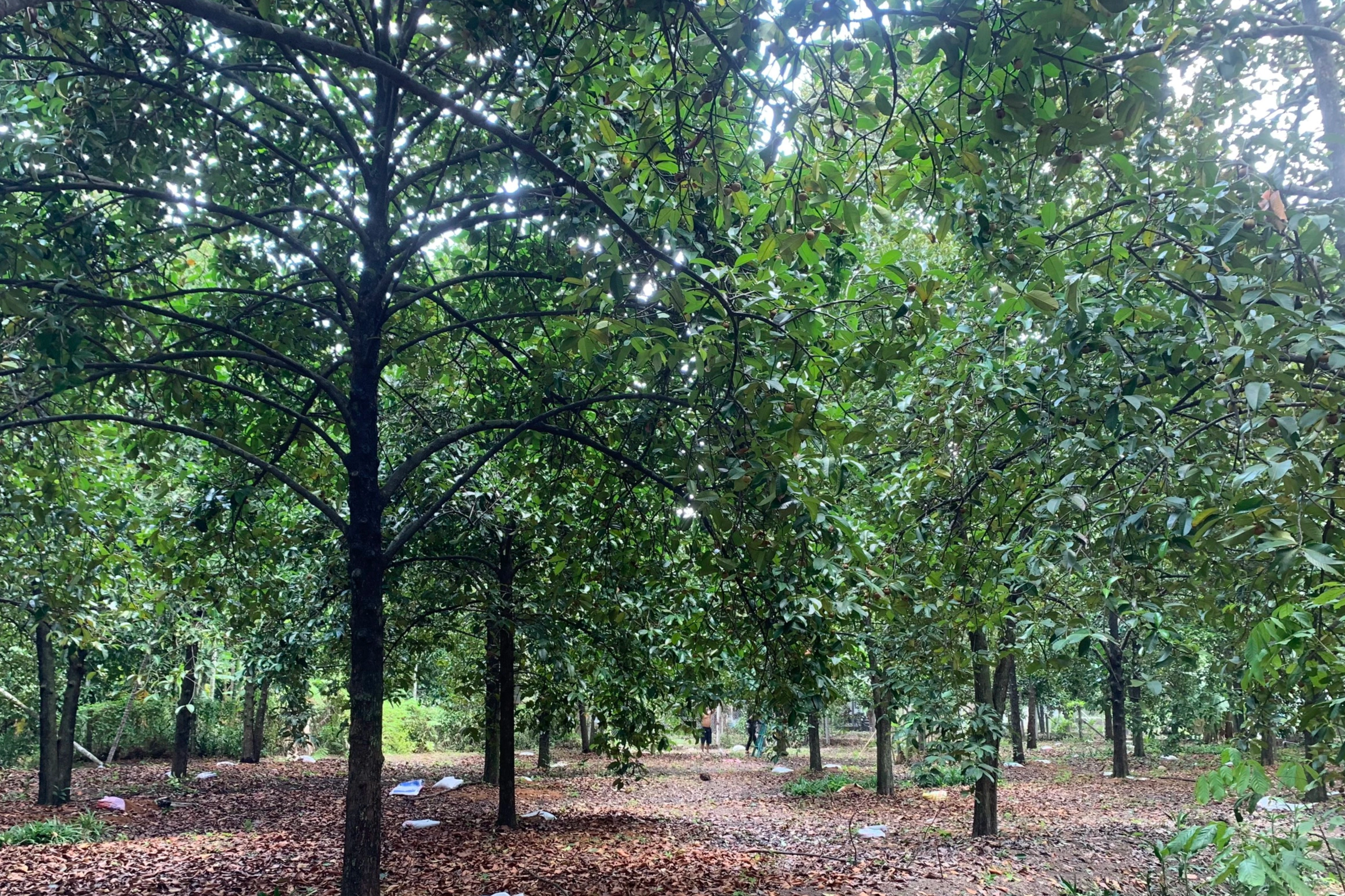 Vườn măng cụt rộng khoảng 8ha của gia đình anh Nguyễn Quang Trợ (tên gọi khác là Năm Trợ, ở xã An Sơn, TP Thuận An, Bình Dương) hiện có 10 nhân công đang hái thuê.