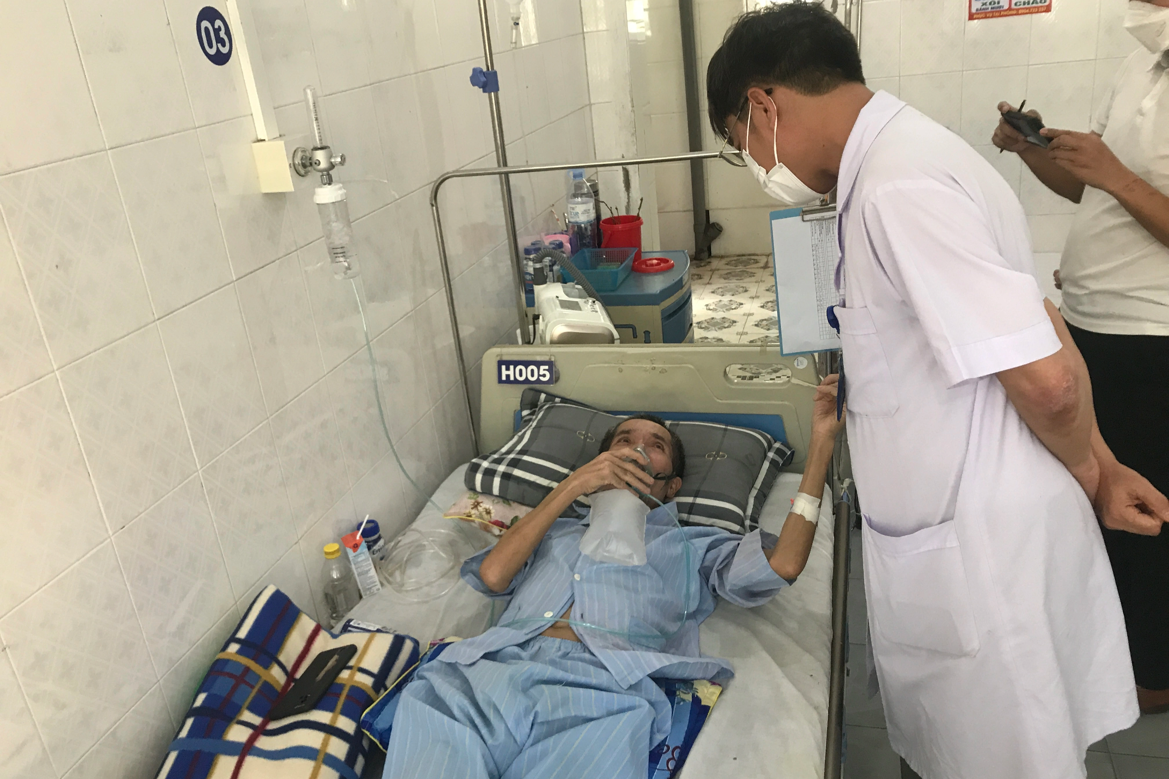 "Bác sĩ hiện giờ chỉ chăm sóc giảm nhẹ cho bệnh nhân chứ không điều trị khỏi bệnh được. Cả 2 đều phải thở oxy, bệnh nhân Hoa đã bị biến chứng sang bệnh lao", ông Thái Đình Lâm nói.