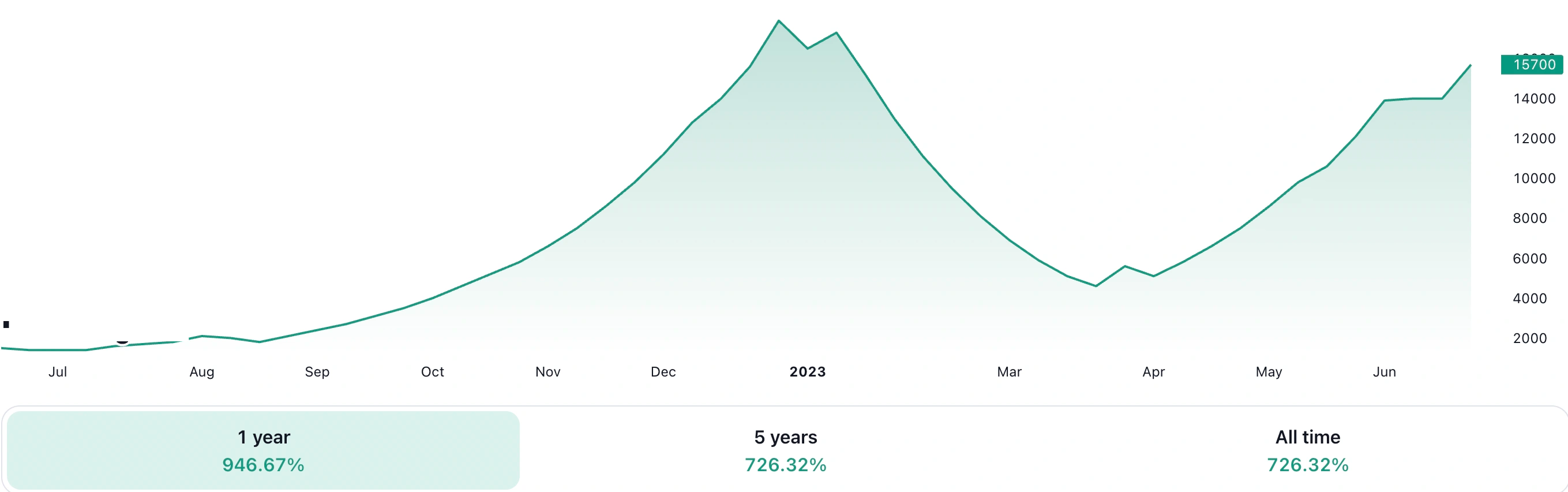 Được biết, giai đoạn cuối năm 2022 cũng là thời gian chứng kiến SJC bật tăng cực mạnh với chuỗi tăng trần liên tiếp. Thời điểm cuối tháng 7/2022, SJC chỉ có giá 1.700 đồng/cổ phiếu thì đến đầu năm nay có lúc đã đạt mức giá 18.600 đồng (tương đương tăng giá hơn 1.330%).