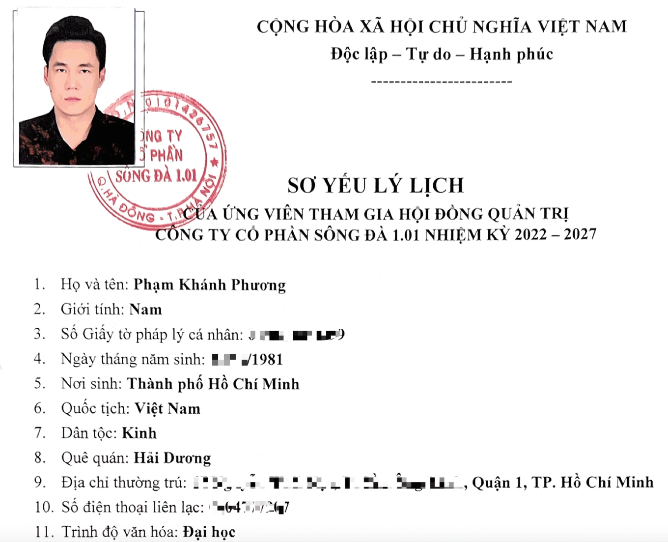 Vừa qua, Sông Đà 1.01 gây chú ý khi có sự gia nhập của ông Phạm Khánh Phương vào Hội đồng quản trị công ty. Nhân vật này nổi tiếng trên vai trò ca sĩ với nghệ danh "Khánh Phương" cùng ca khúc đình đám Chiếc khăn gió ấm .