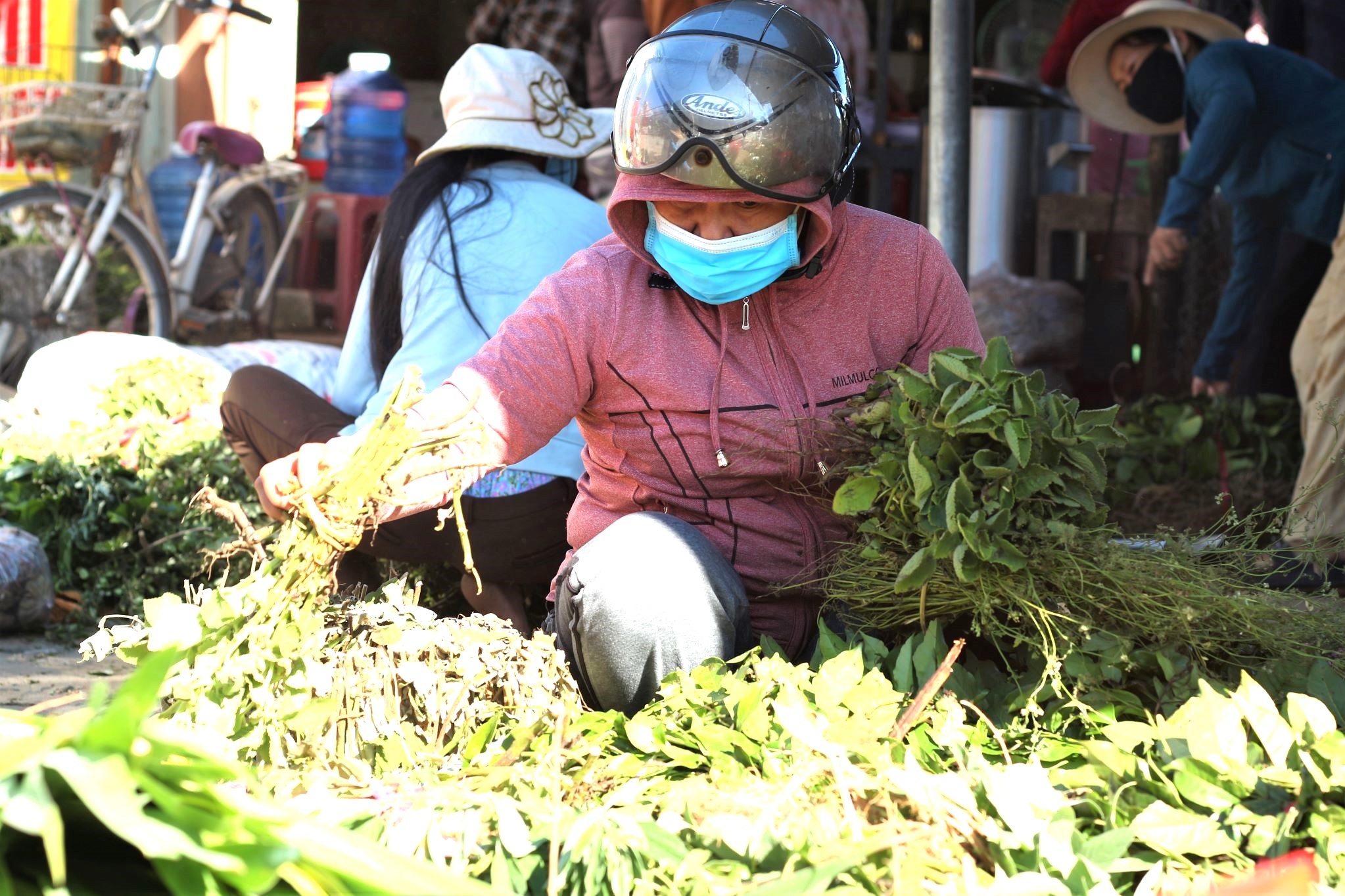 Cạnh đó, bà Nguyễn Thị Lịch (55 tuổi, trú thị xã Điện Bàn, Quảng Nam) cũng đang tất bật bày bán lá. Bà Lịch làm nghề hái lá mùng 5 đã hơn 40 năm. Từ những ngày còn nhỏ, bà đã theo chân mẹ vào rừng hái lá.
