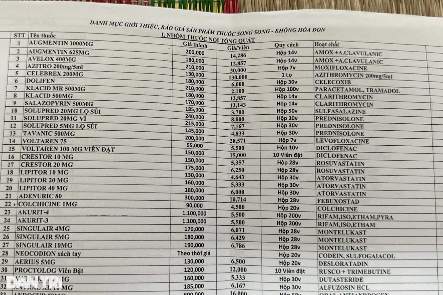 Cuối tháng 6, phóng viên Dân trí nhận được phản ánh của một số y bác sĩ tại (TPHCM), về việc có người mang bảng báo giá hàng loạt thuốc lậu (thuốc nhập từ nước ngoài, không hóa đơn) vào tận các khoa chào mời mua cho bệnh nhân dùng.