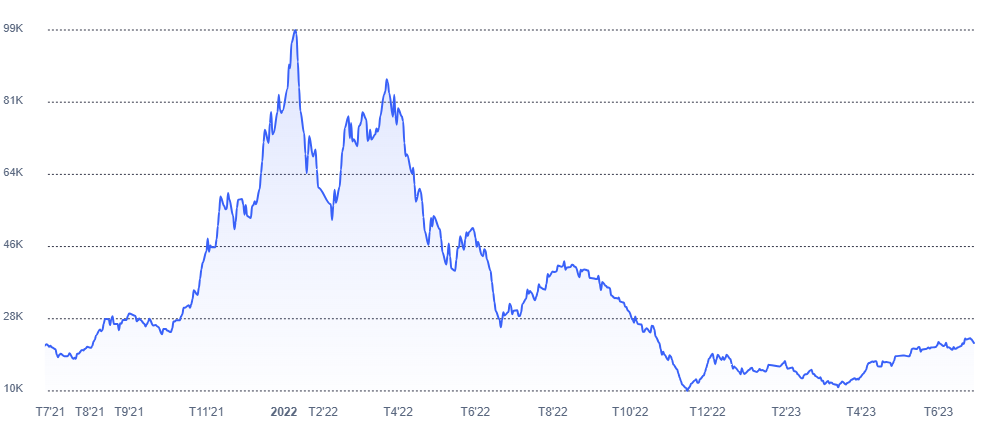 Giá cổ phiếu DIG chốt phiên ngày 28/6 ở mức 22.400 đồng/cổ phiếu, giảm mạnh so với đỉnh 99.100 đồng/cổ phiếu hồi tháng 1/2022.