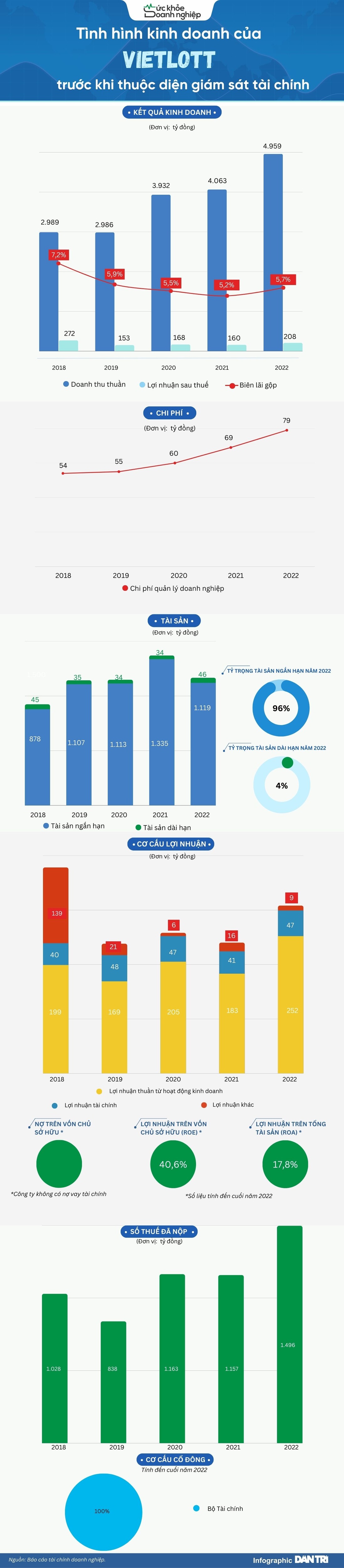 Một điểm đặc biệt khác là Vietlott không có nợ vay tài chính. Các chỉ số lợi nhuận trên vốn chủ sở hữu (ROE) và lợi nhuận trên tổng tài sản (ROA) đều ở mức khá cao, lần lượt đạt 40,6% và 17,8%.